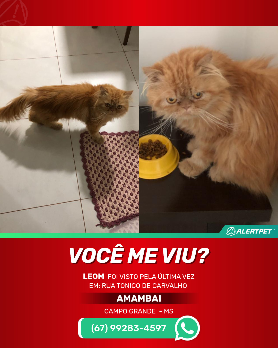 #alertpet #procurase #GatoDesaparecido #Campo Grande #procuramosLeom