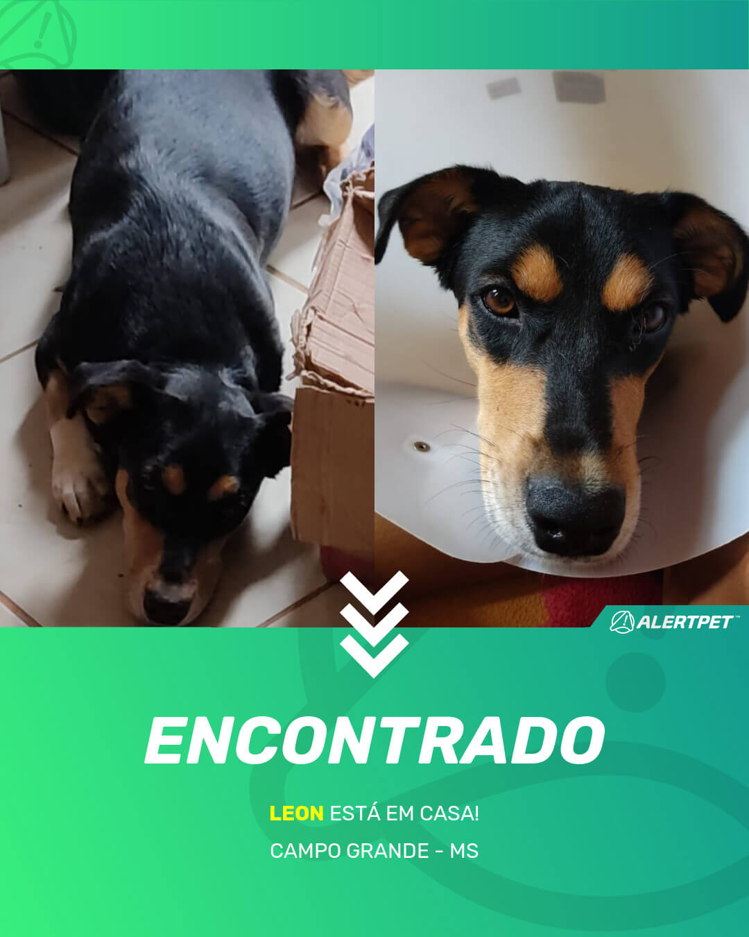 Depois de dois meses a cadelinha foi finalmente localizada graças a um anúncio da AlertPet