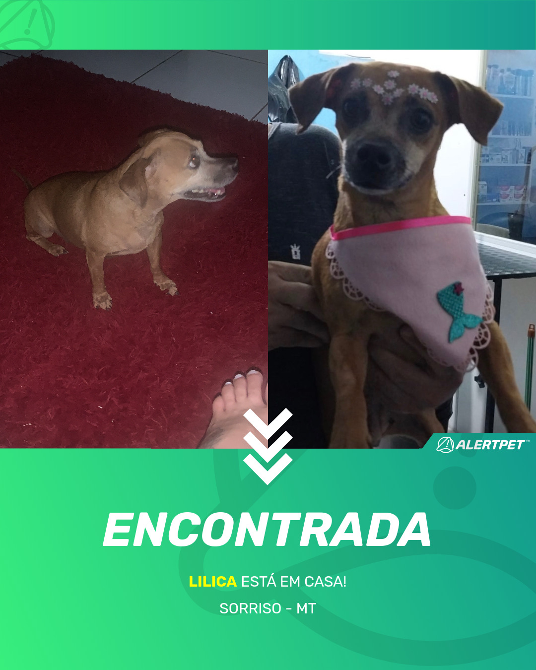 Depois de dois meses a cadelinha foi finalmente localizada graças a um anúncio da AlertPet