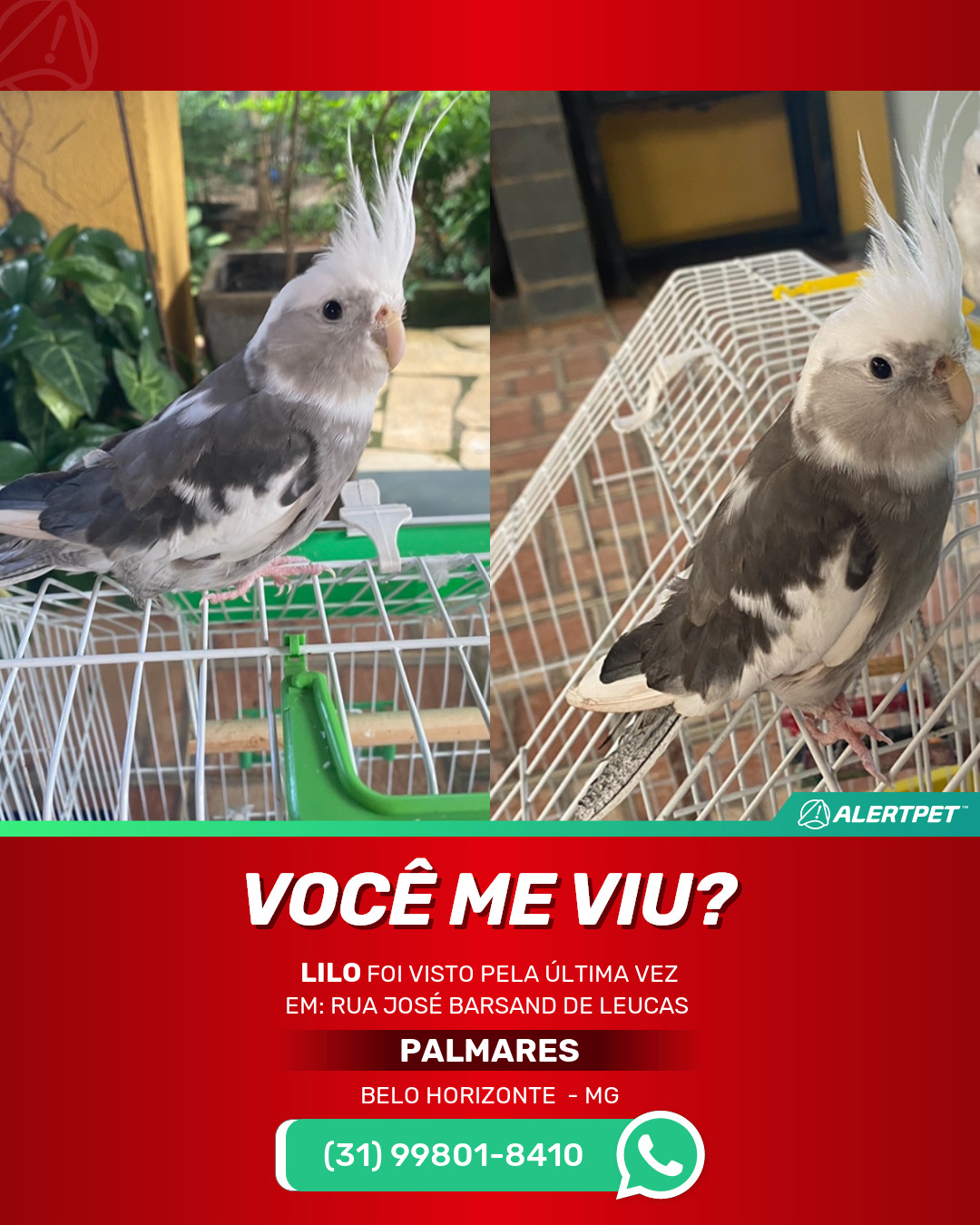 #alertpet #procurase #PássaroDesaparecido #Belo Horizonte #procuramosLilo