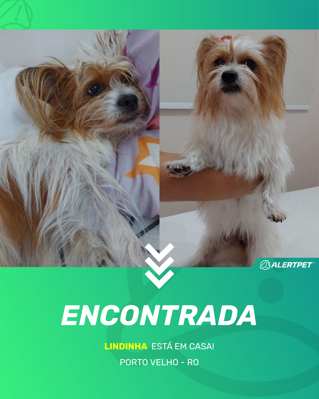 Depois de dois meses a cadelinha foi finalmente localizada graças a um anúncio da AlertPet