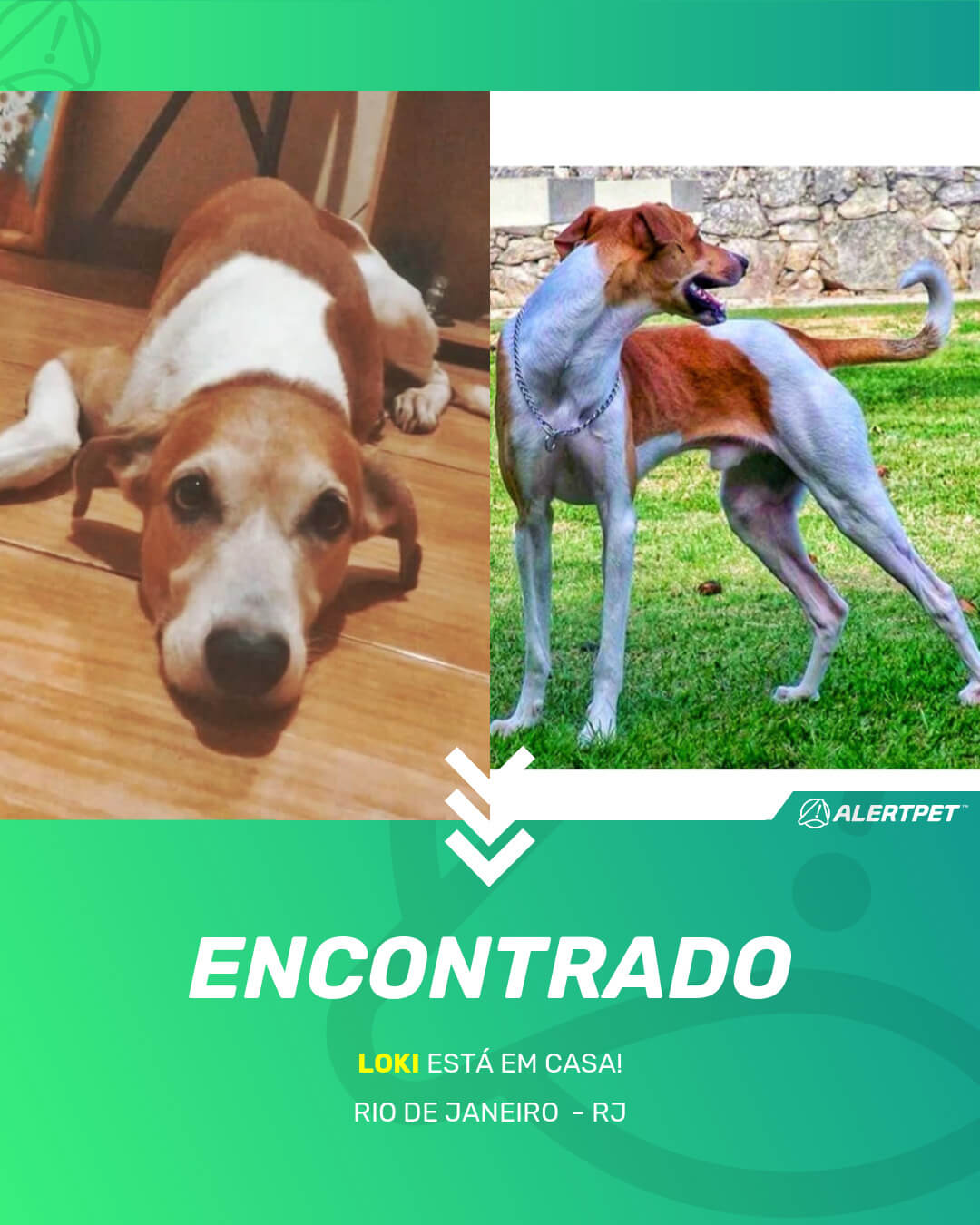 Depois de dois meses a cadelinha foi finalmente localizada graças a um anúncio da AlertPet