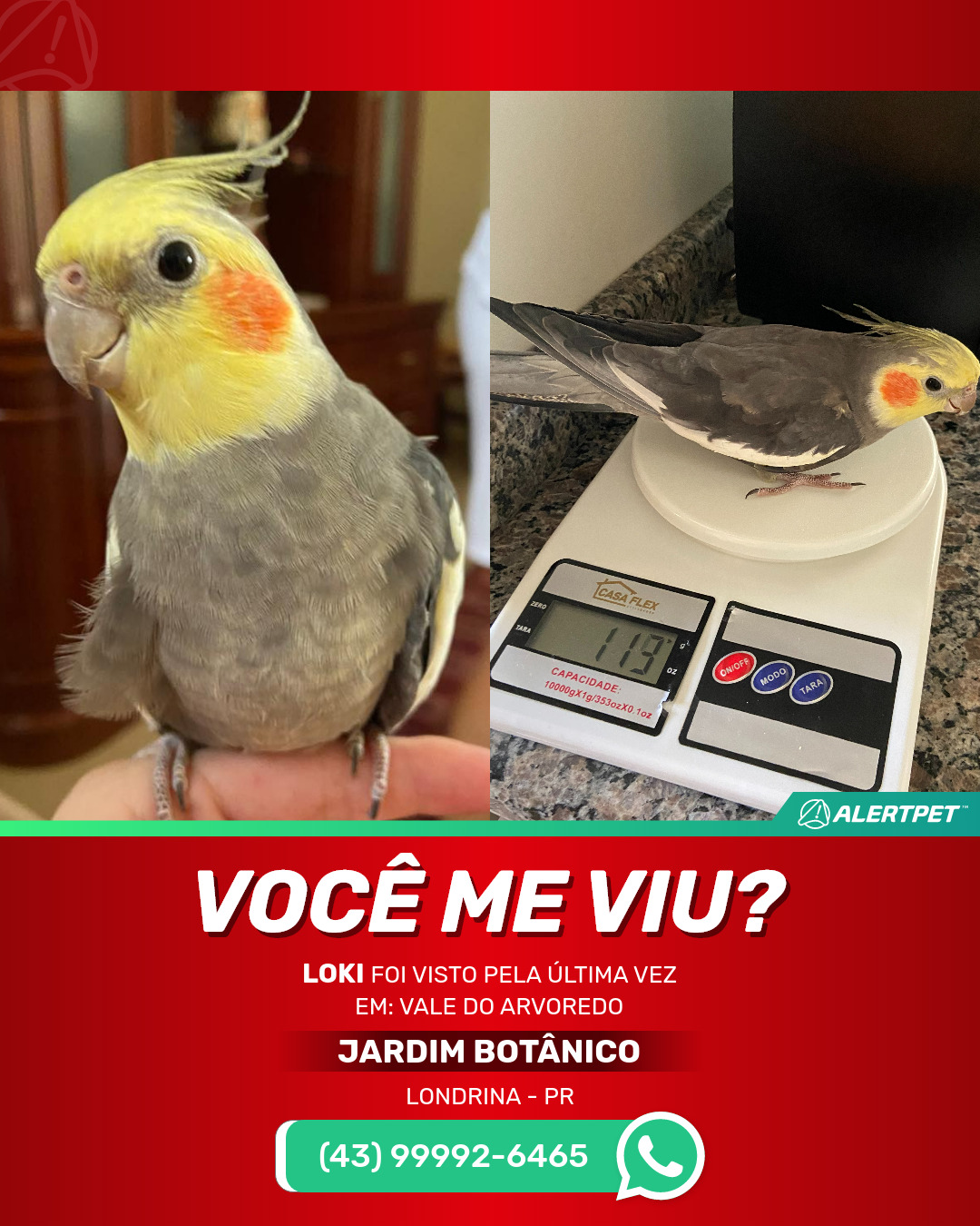 #AlertPet #Procurase #PassaroDesaparecido #Londrina #ProcuramosLoki