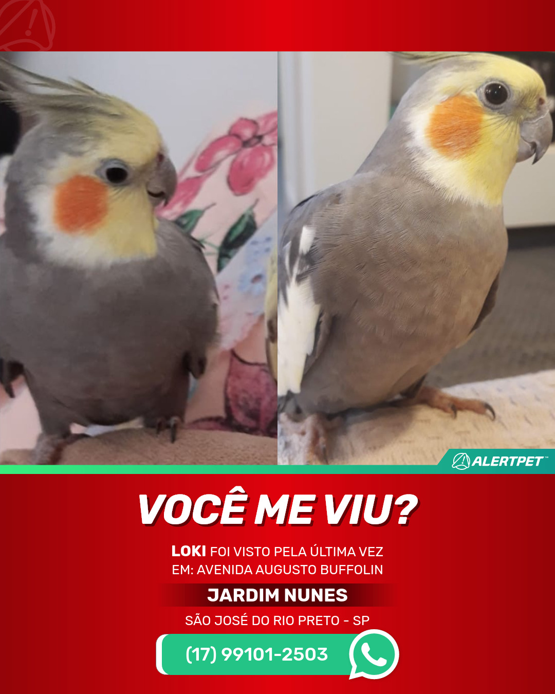 #alertpet #procurase #PássaroDesaparecido #São José do Rio preto #procuramosLoki