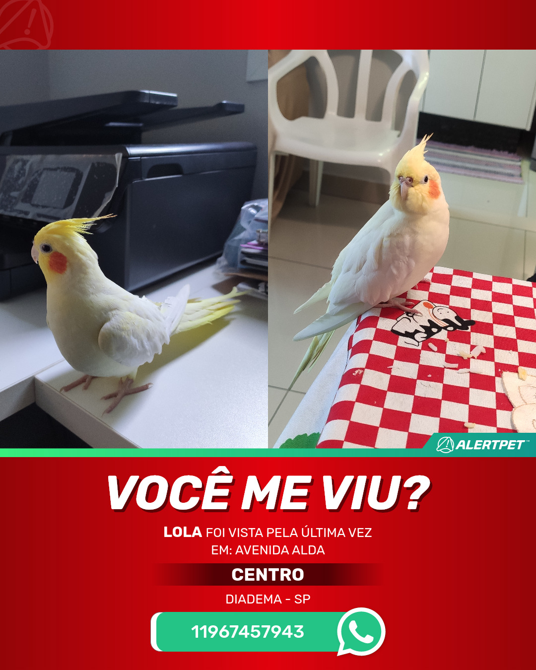 #AlertPet #Procurase #PassaroDesaparecido #Diadema #ProcuramosLola