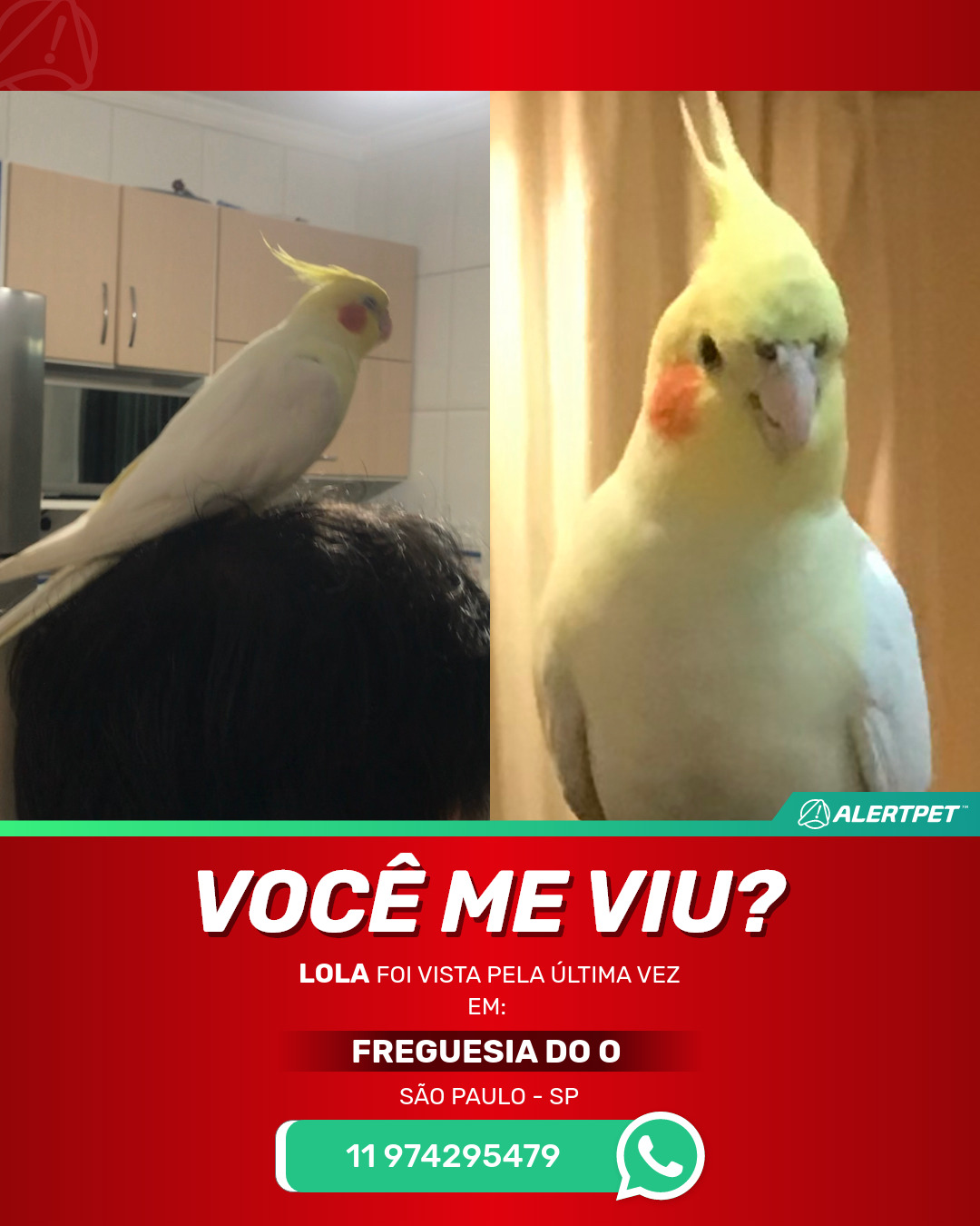 #AlertPet #Procurase #PassaroDesaparecido #SaoPaulo #ProcuramosLola