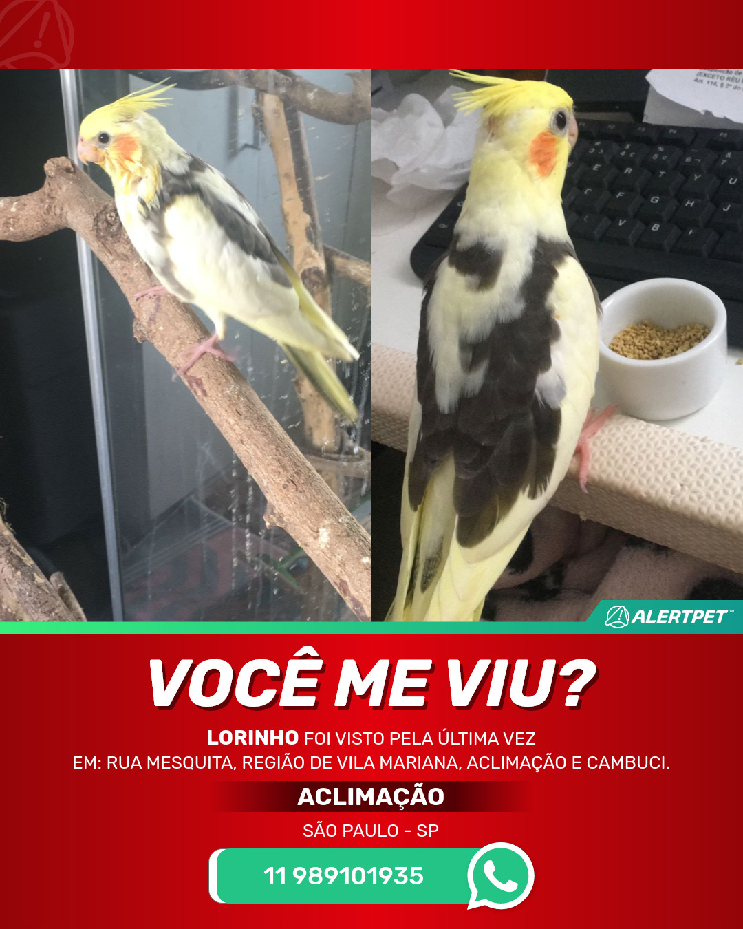 #AlertPet #Procurase #PassaroDesaparecido #SaoPaulo #ProcuramosLorinho