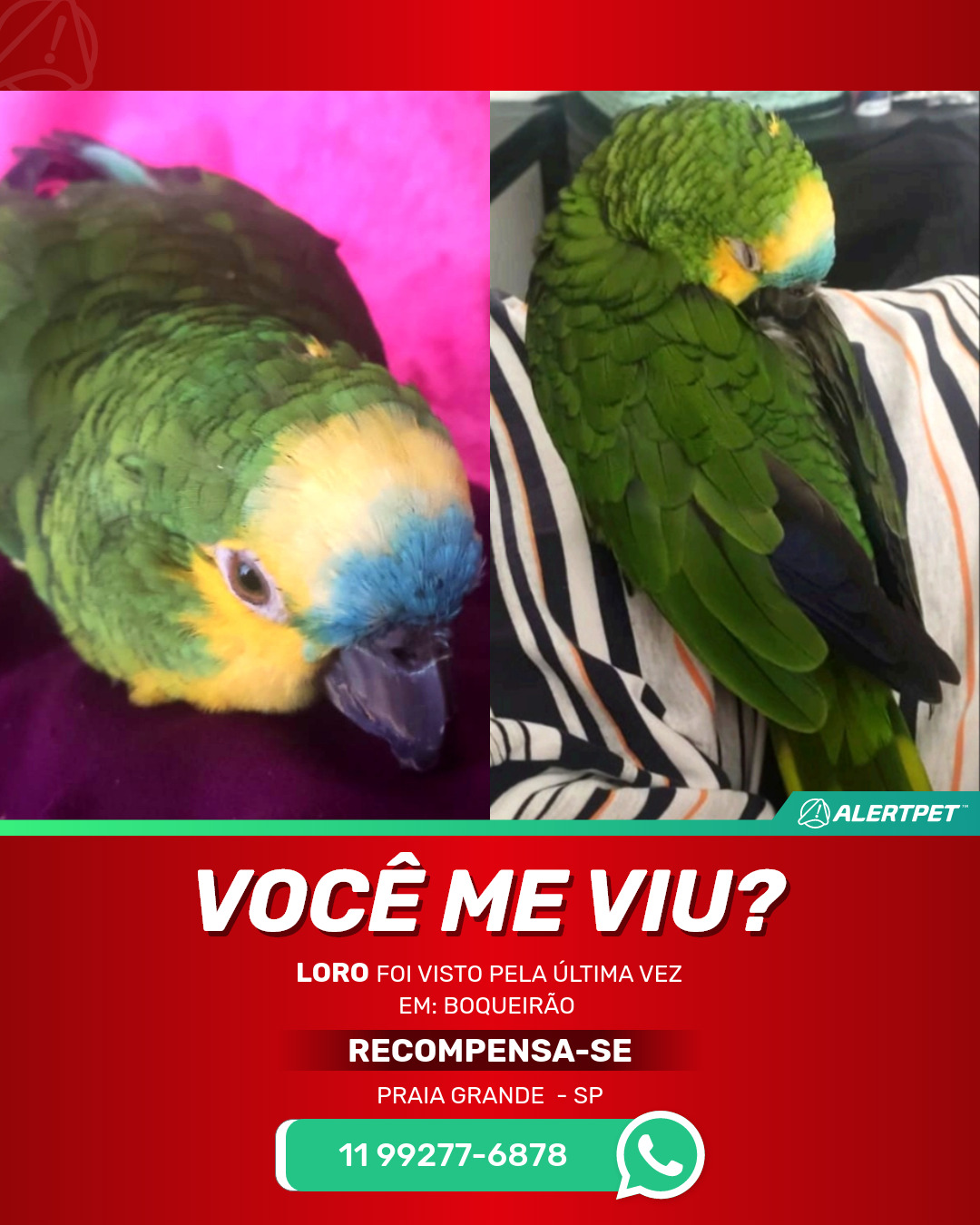 #AlertPet #Procurase #PassaroDesaparecido #PraiaGrande #ProcuramosLoro