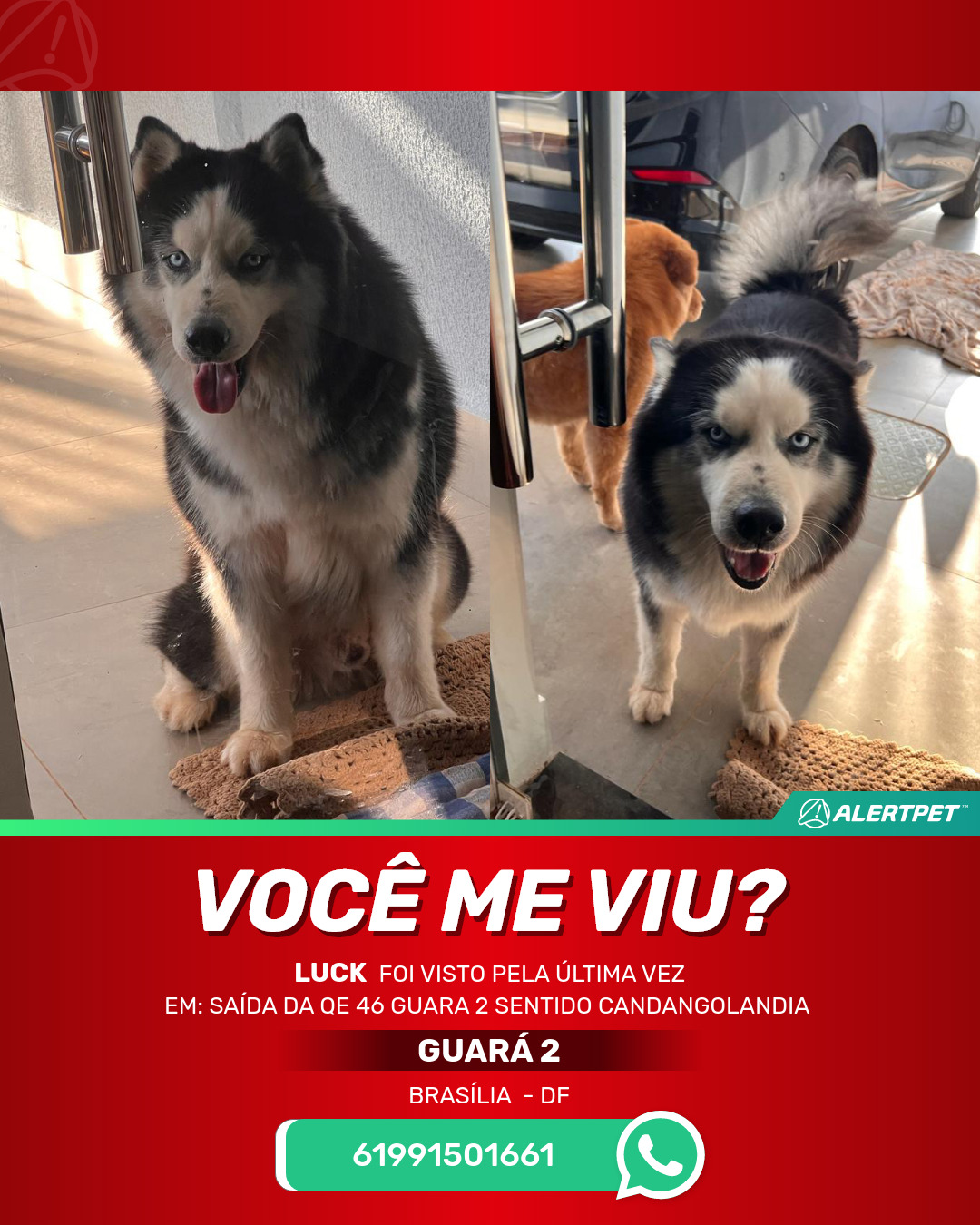 #AlertPet #Procurase #CachorroDesaparecido #Brasilia #ProcuramosLuck