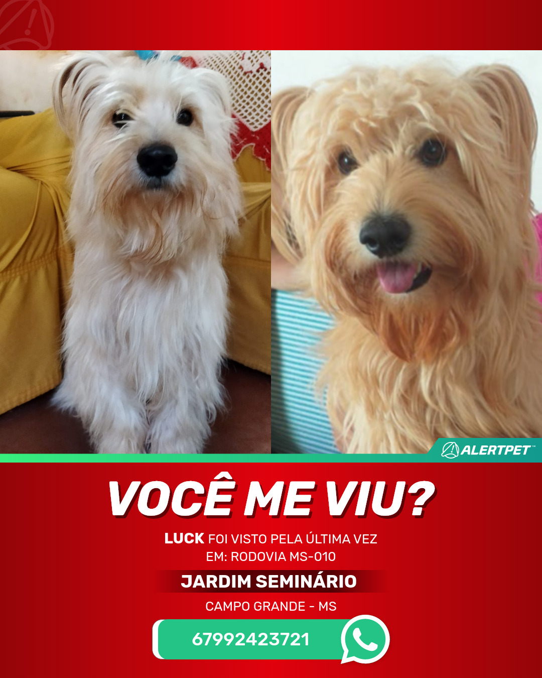 #AlertPet #Procurase #CachorroDesaparecido #CampoGrande #ProcuramosLuck