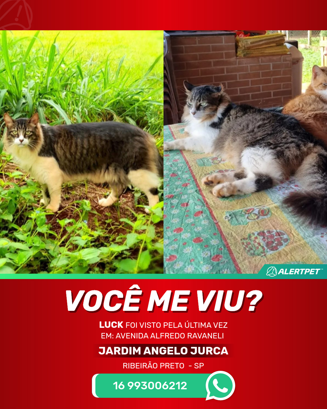 #AlertPet #Procurase #GatoDesaparecido #RibeiraoPreto #ProcuramosLuck