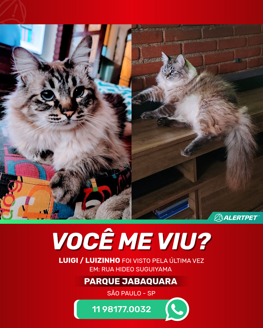 #AlertPet #Procurase #GatoDesaparecido #SaoPaulo #ProcuramosLuigi/Luizinho