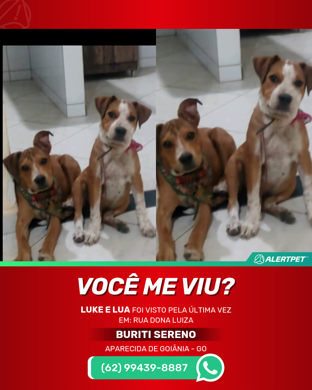 #alertpet #procurase #CachorroDesaparecido #Aparecida de Goiânia #procuramosLuke e Lua
