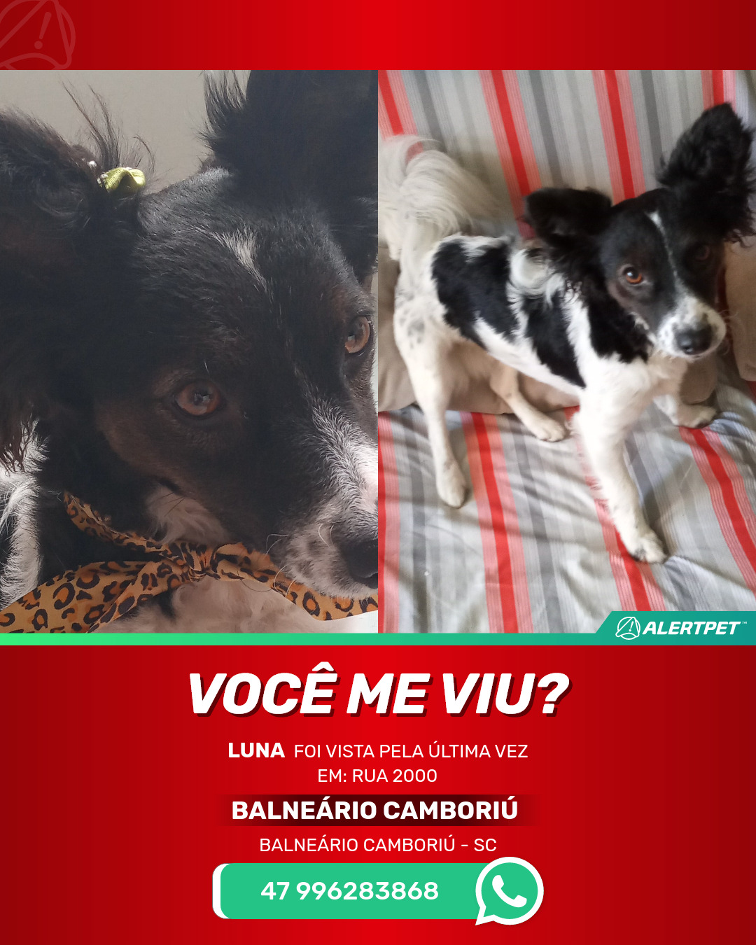 #alertpet #procurase #CachorroDesaparecido #Balneário Camboriú #procuramosLUNA