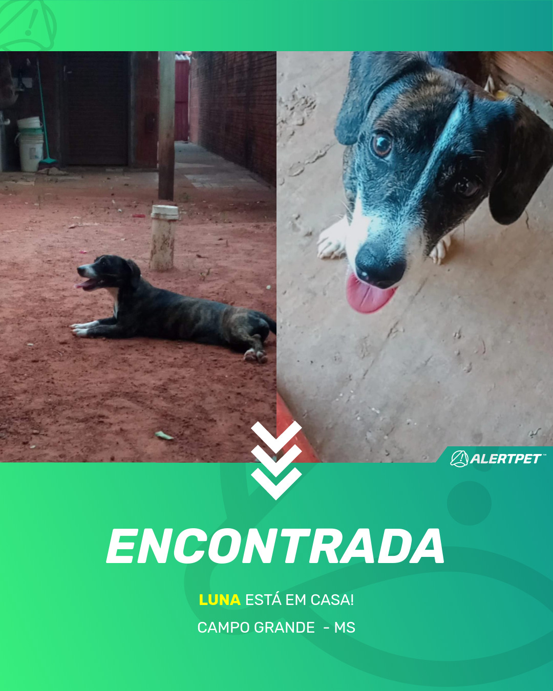 Depois de dois meses a cadelinha foi finalmente localizada graças a um anúncio da AlertPet