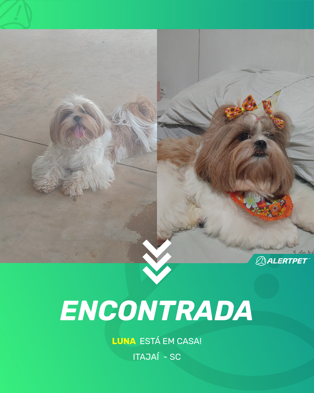 Depois de dois meses a cadelinha foi finalmente localizada graças a um anúncio da AlertPet