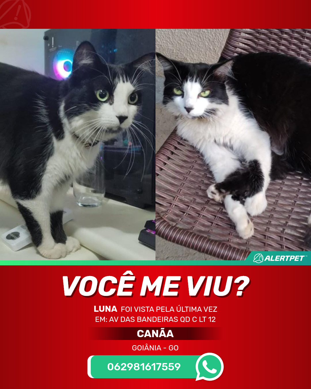 #AlertPet #Procurase #GatoDesaparecido #Goiania #ProcuramosLuna