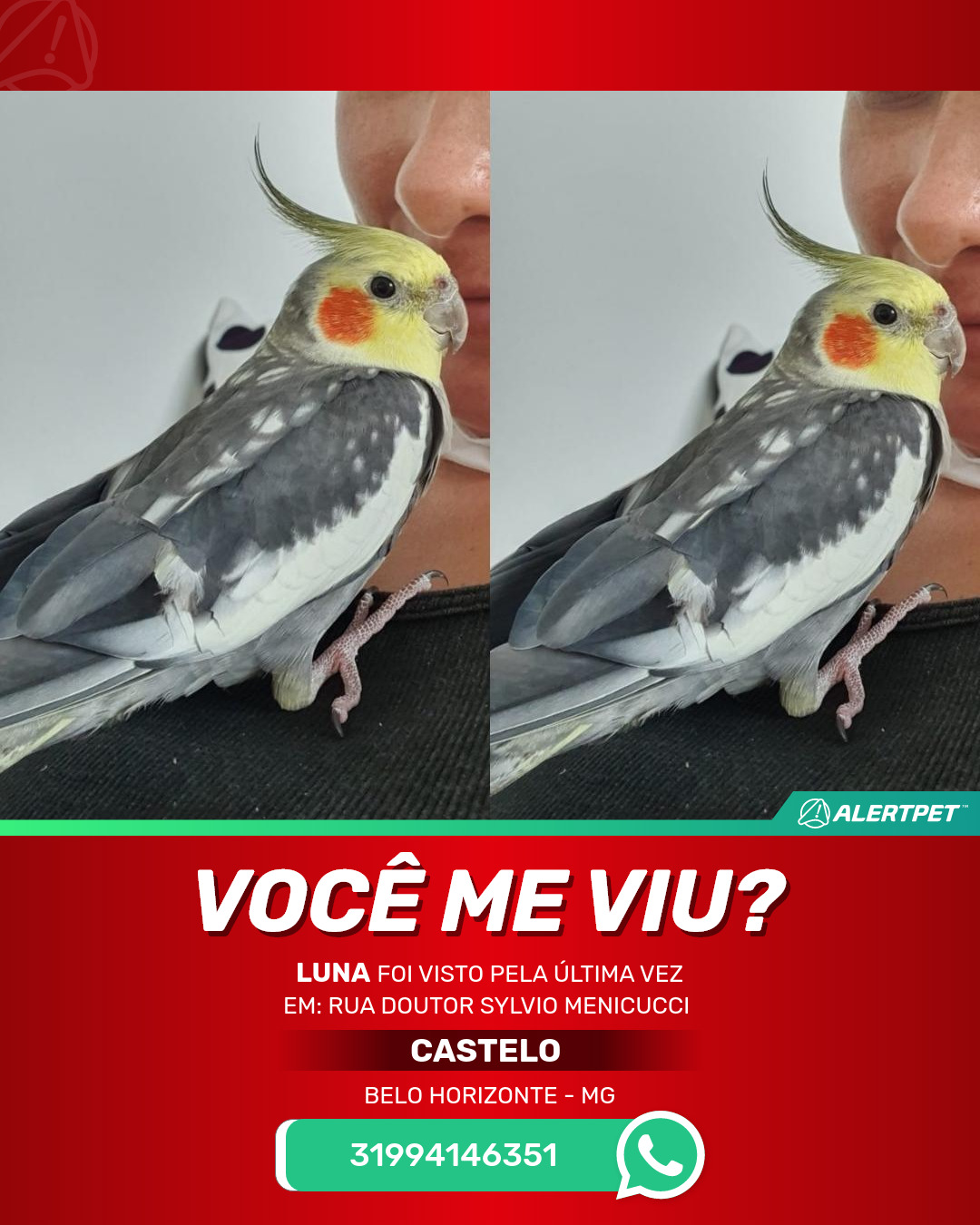 #AlertPet #Procurase #PassaroDesaparecido #BeloHorizonte #ProcuramosLuna