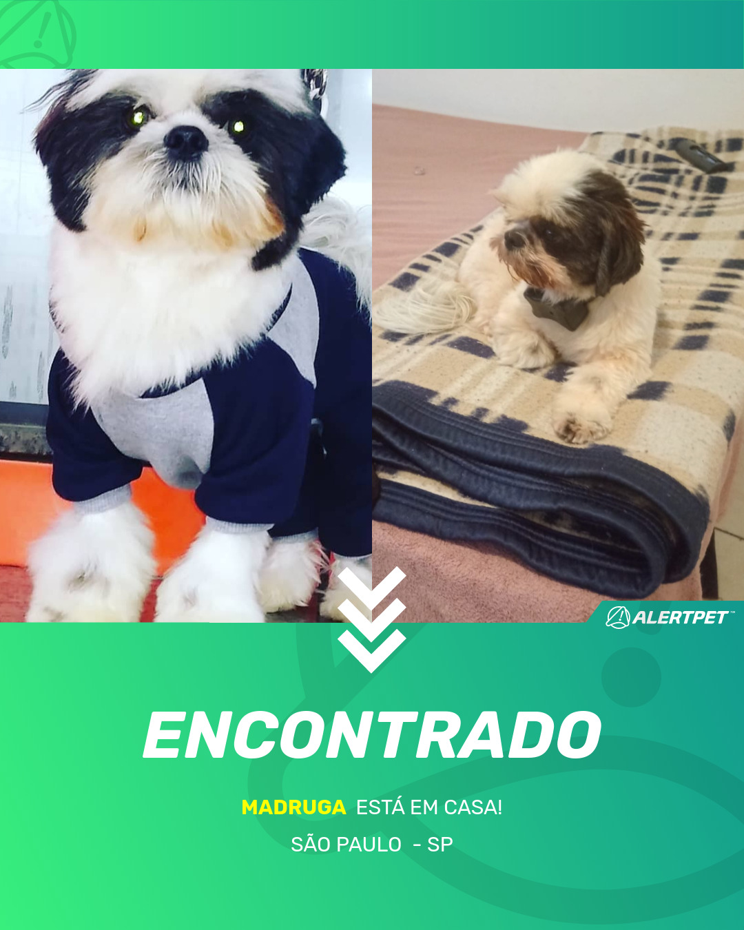 Depois de dois meses a cadelinha foi finalmente localizada graças a um anúncio da AlertPet