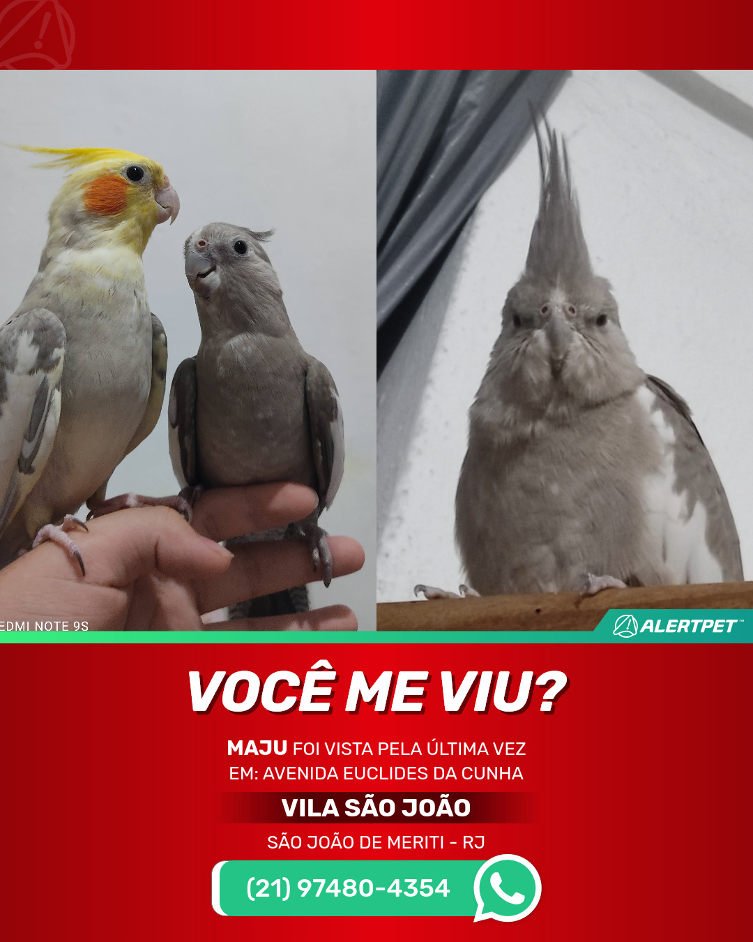 #alertpet #procurase #PássaroDesaparecido #São João de Meriti #procuramosMaju
