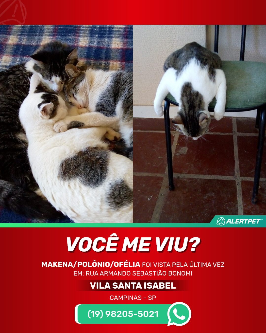 Gato Perdido Vila Santa Isabel Campinas - São Paulo | Makena/Polônio/Ofélia - 1 ano