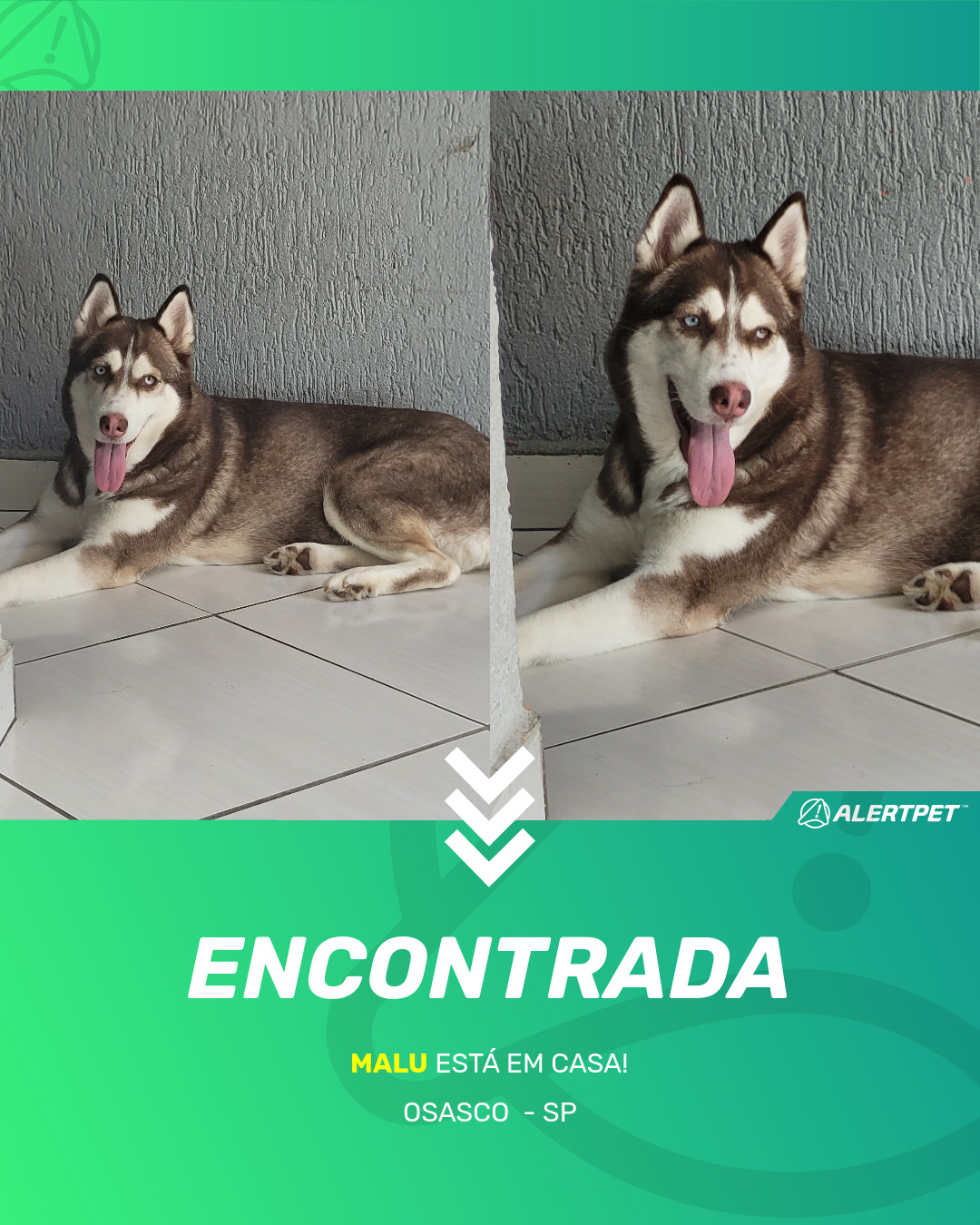 Depois de dois meses a cadelinha foi finalmente localizada graças a um anúncio da AlertPet