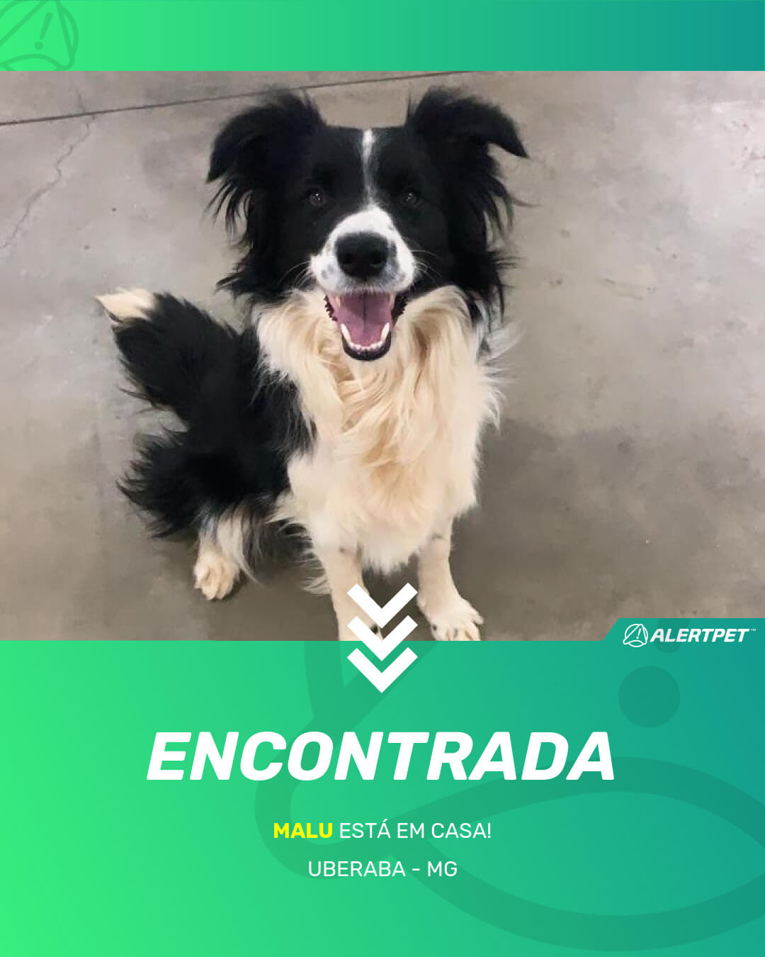 Depois de dois meses a cadelinha foi finalmente localizada graças a um anúncio da AlertPet