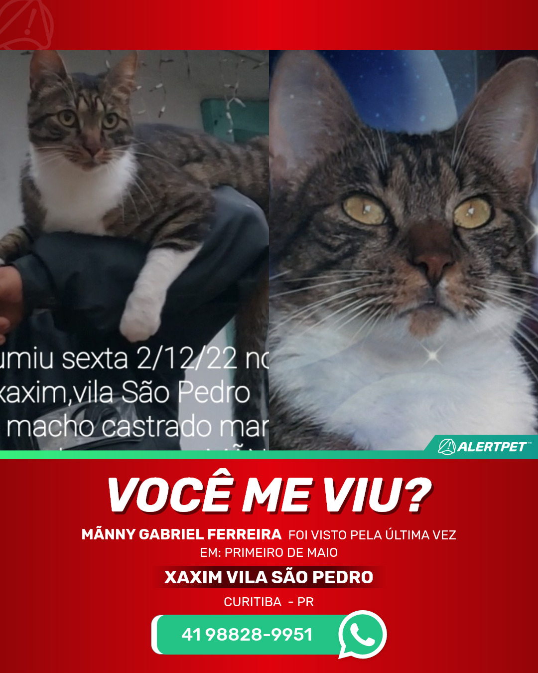 Gato Perdido Xaxim vila São Pedro Curitiba - Paraná | MÃNNY GABRIEL FERREIRA - 3 anos