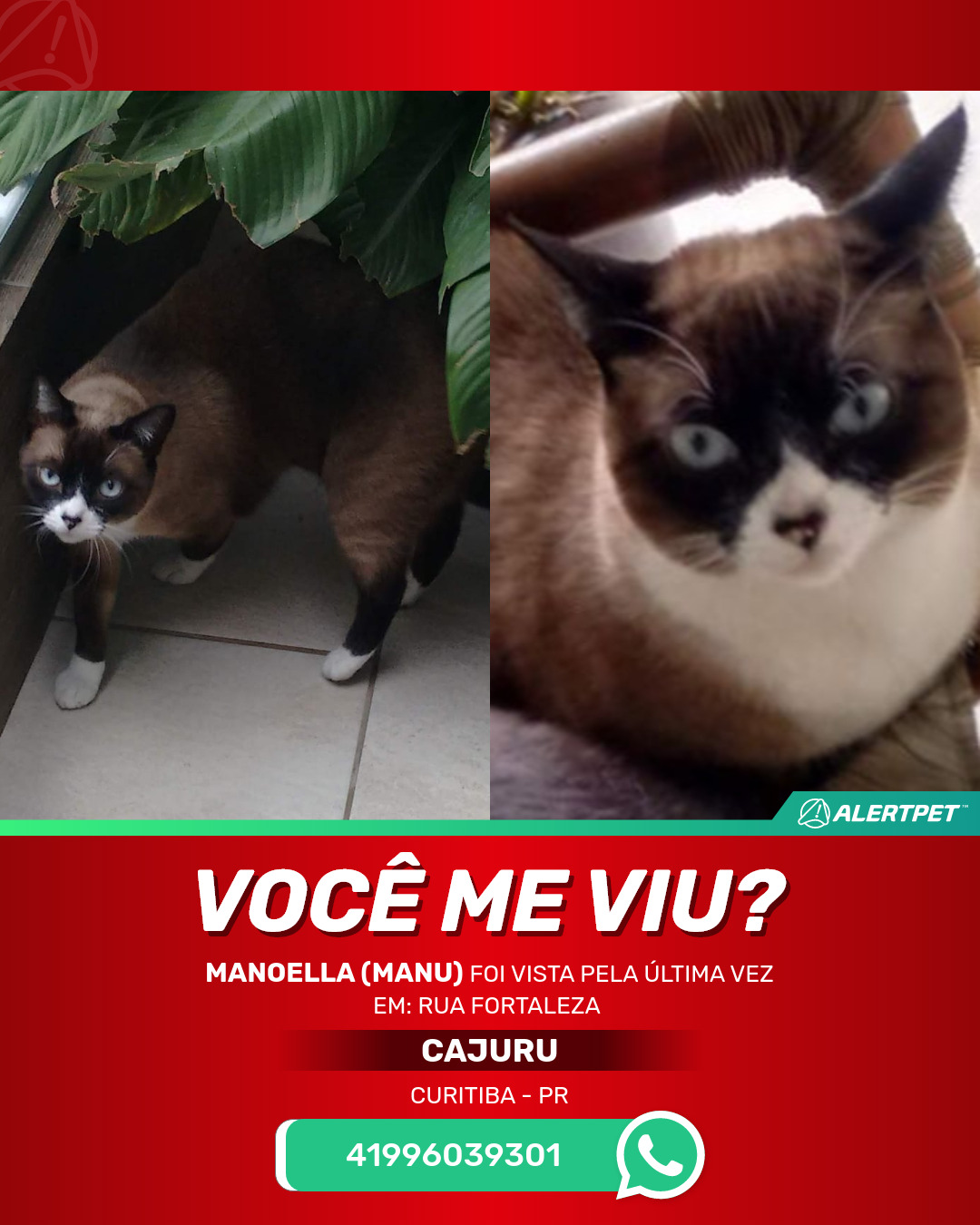 #AlertPet #Procurase #GatoDesaparecido #Curitiba #ProcuramosManoella(manu)