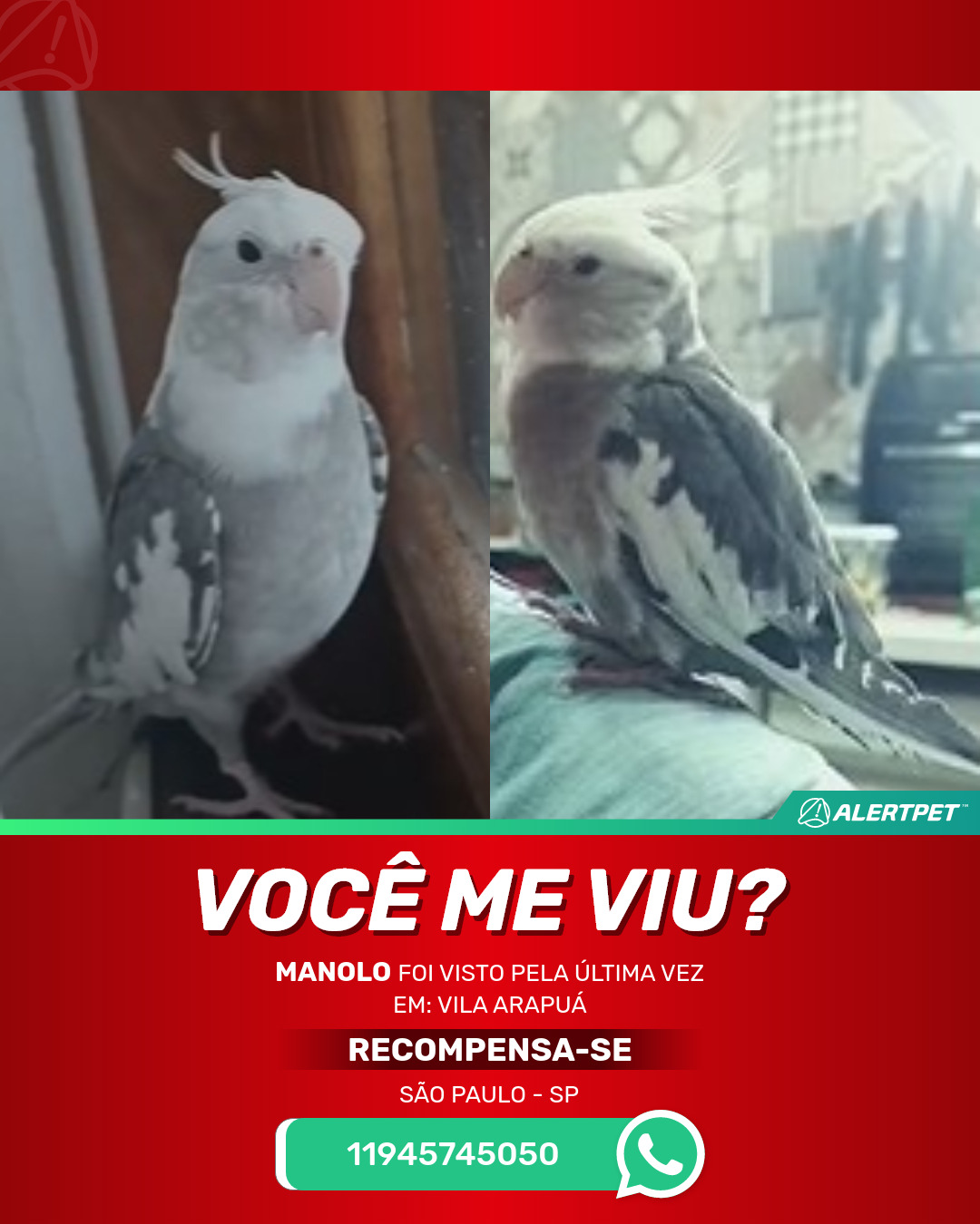 #AlertPet #Procurase #PassaroDesaparecido #SaoPaulo #ProcuramosManolo