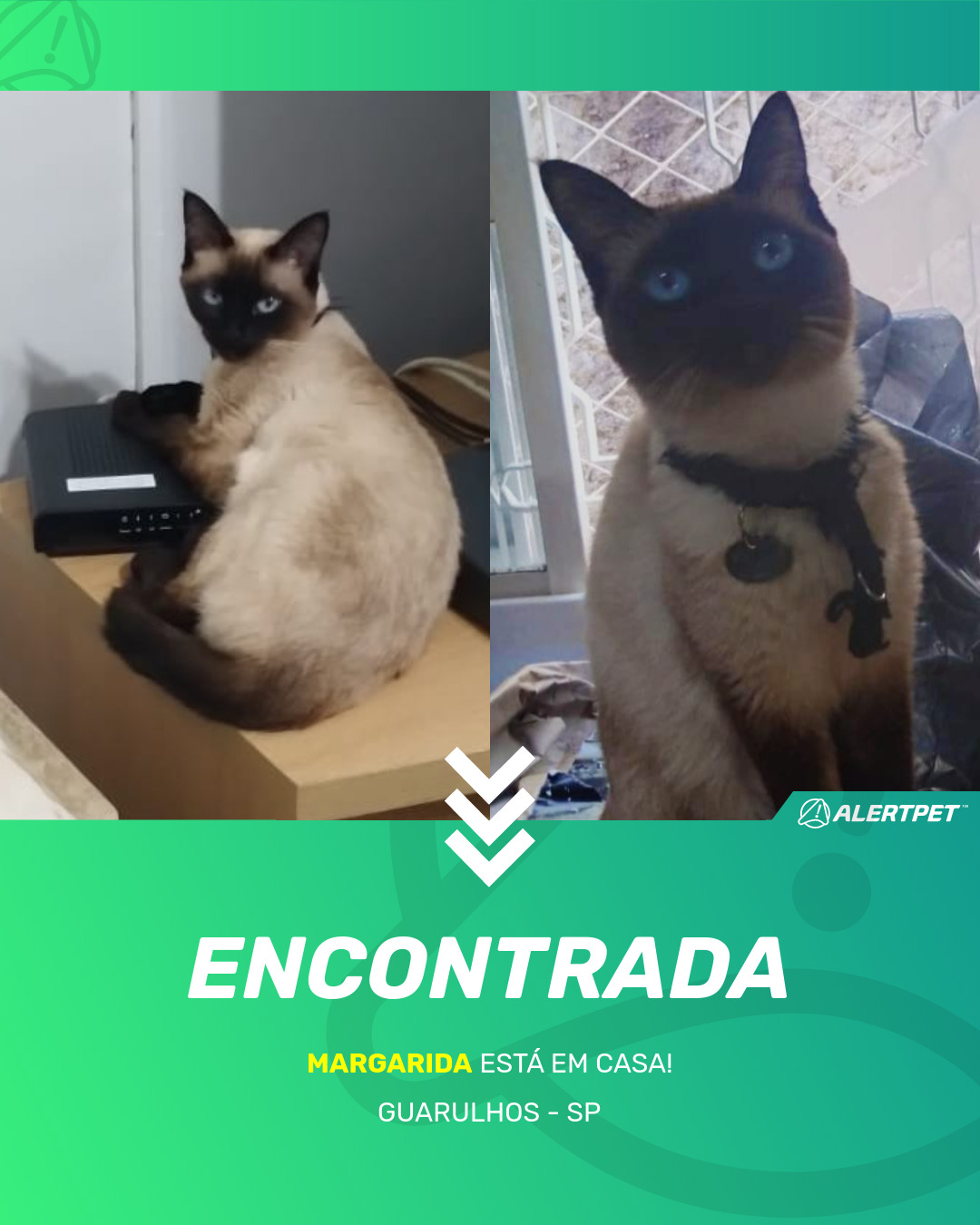 Depois de dois meses a cadelinha foi finalmente localizada graças a um anúncio da AlertPet