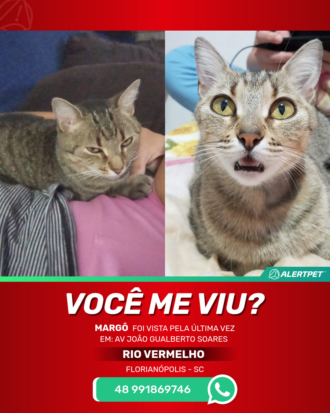 #AlertPet #Procurase #GatoDesaparecido #Florianopolis #ProcuramosMargo