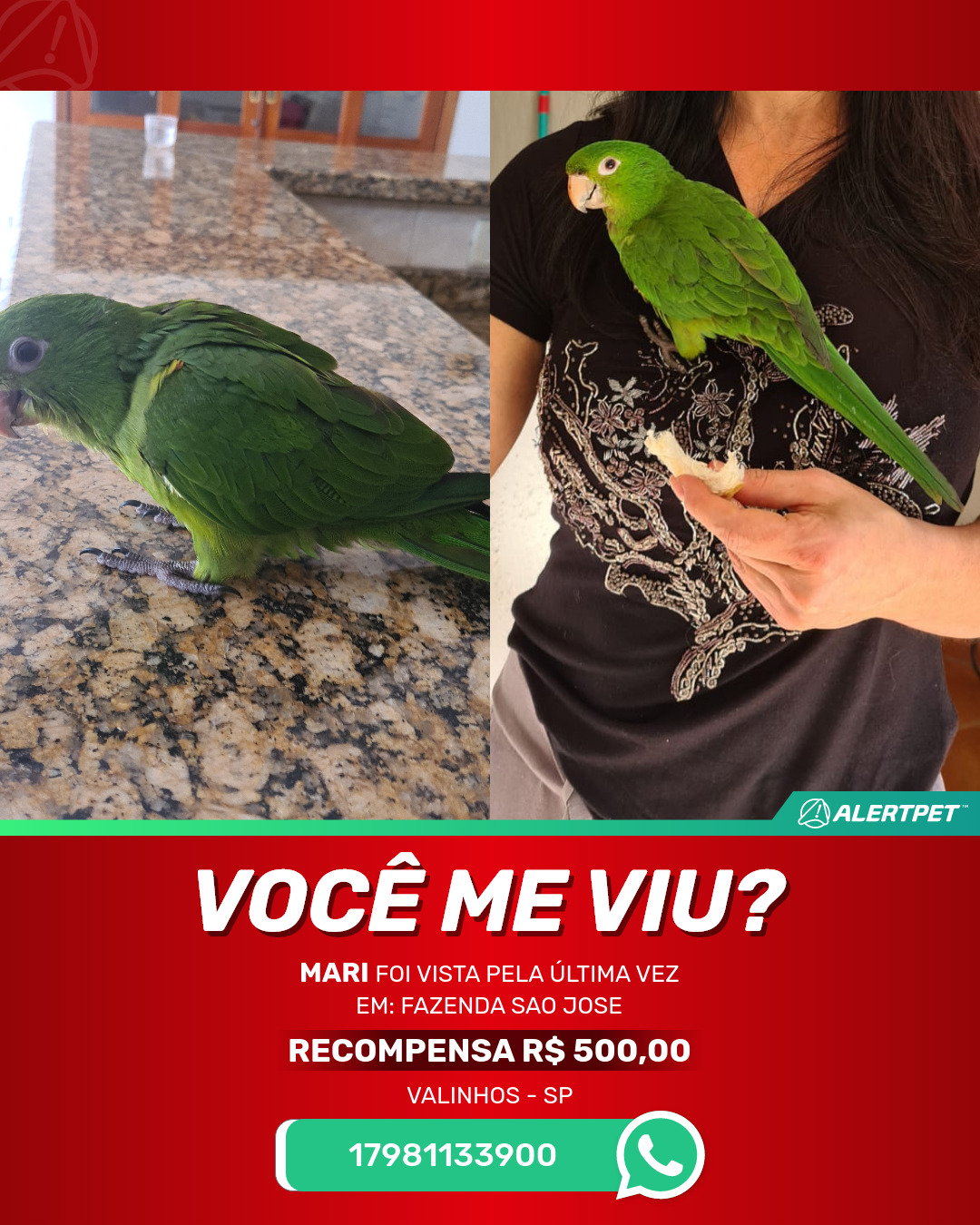 #AlertPet #Procurase #PassaroDesaparecido #Valinhos #ProcuramosMari