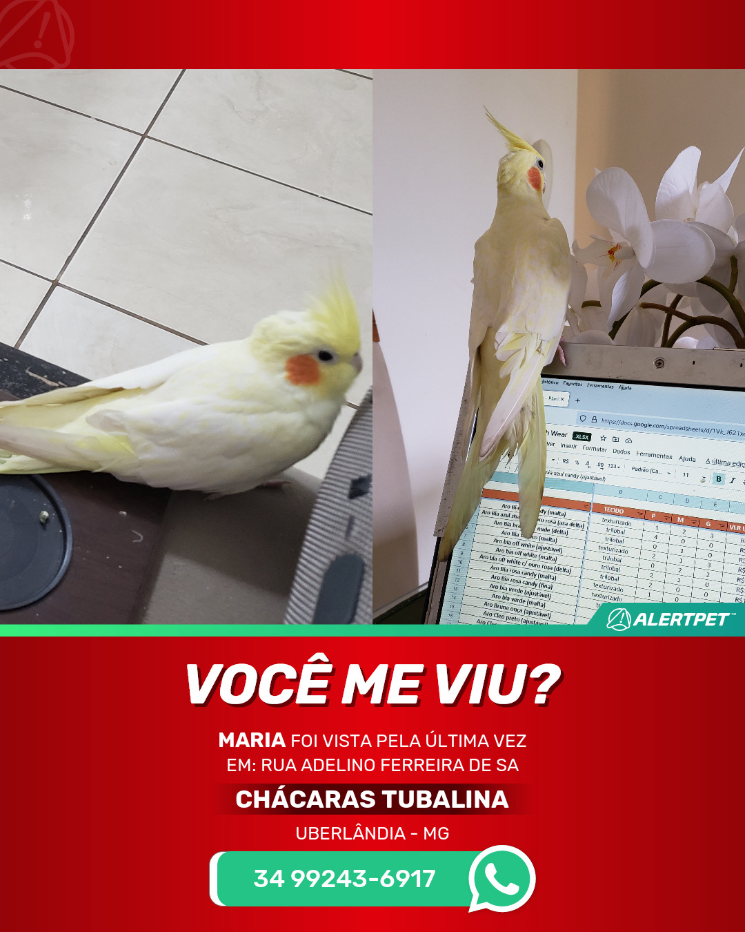 #alertpet #procurase #PássaroDesaparecido #Uberlândia #procuramosMaria