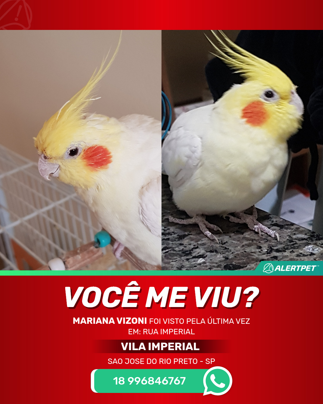 #AlertPet #Procurase #PassaroDesaparecido #SaoJoseDoRioPreto #ProcuramosMarianaVizoni