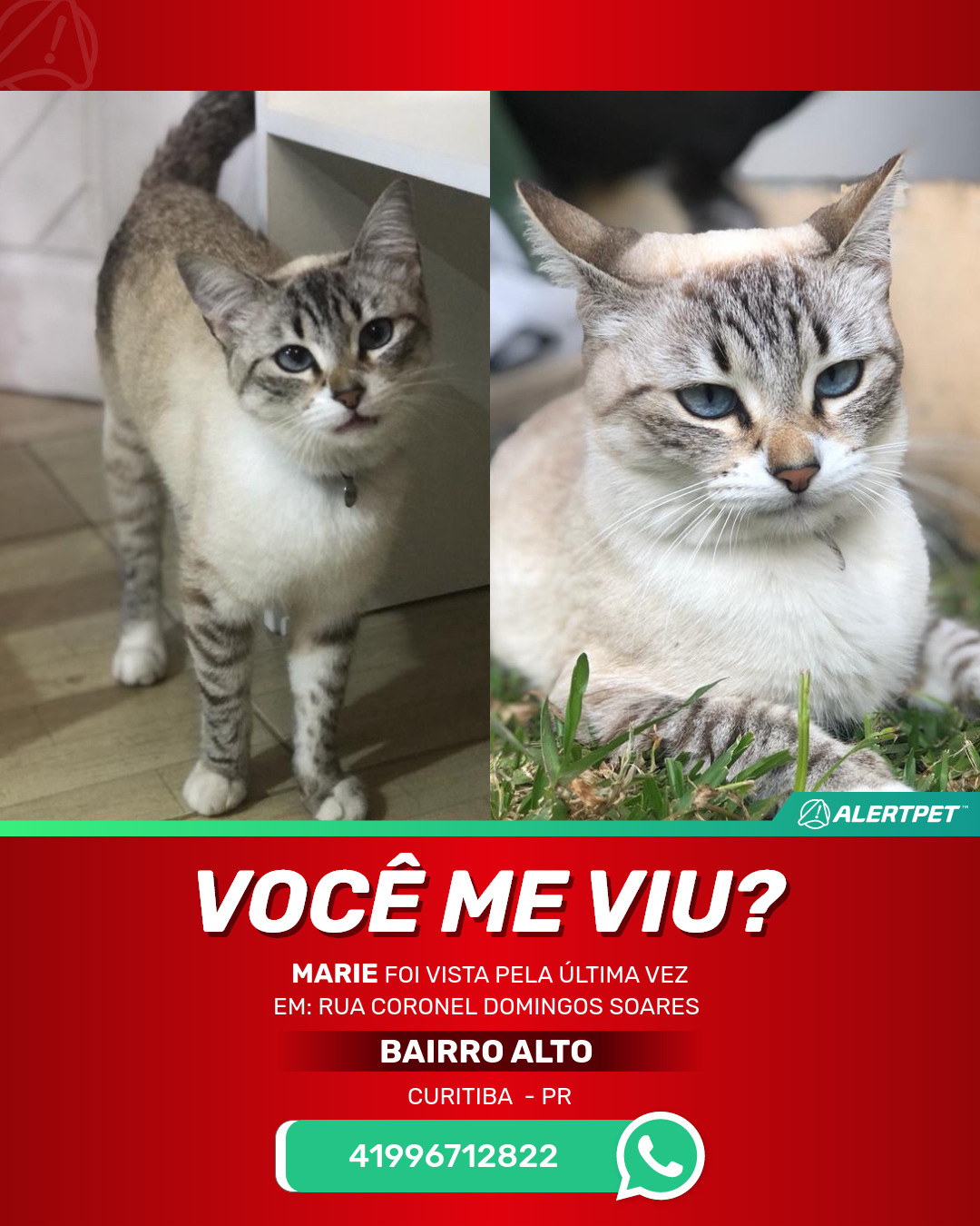 #AlertPet #Procurase #GatoDesaparecido #Curitiba #ProcuramosMarie