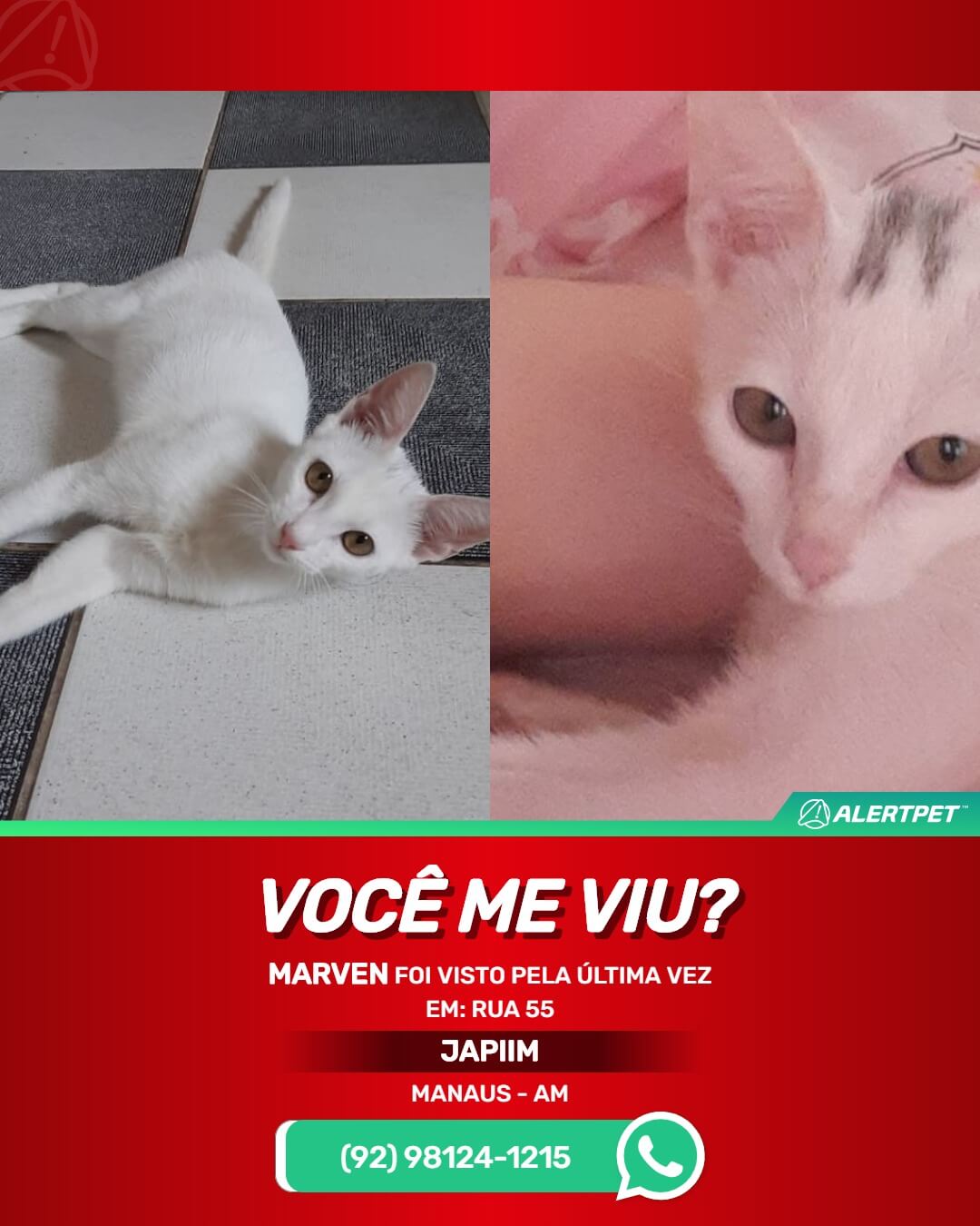 #alertpet #procurase #GatoDesaparecido #Manaus #procuramosMarven