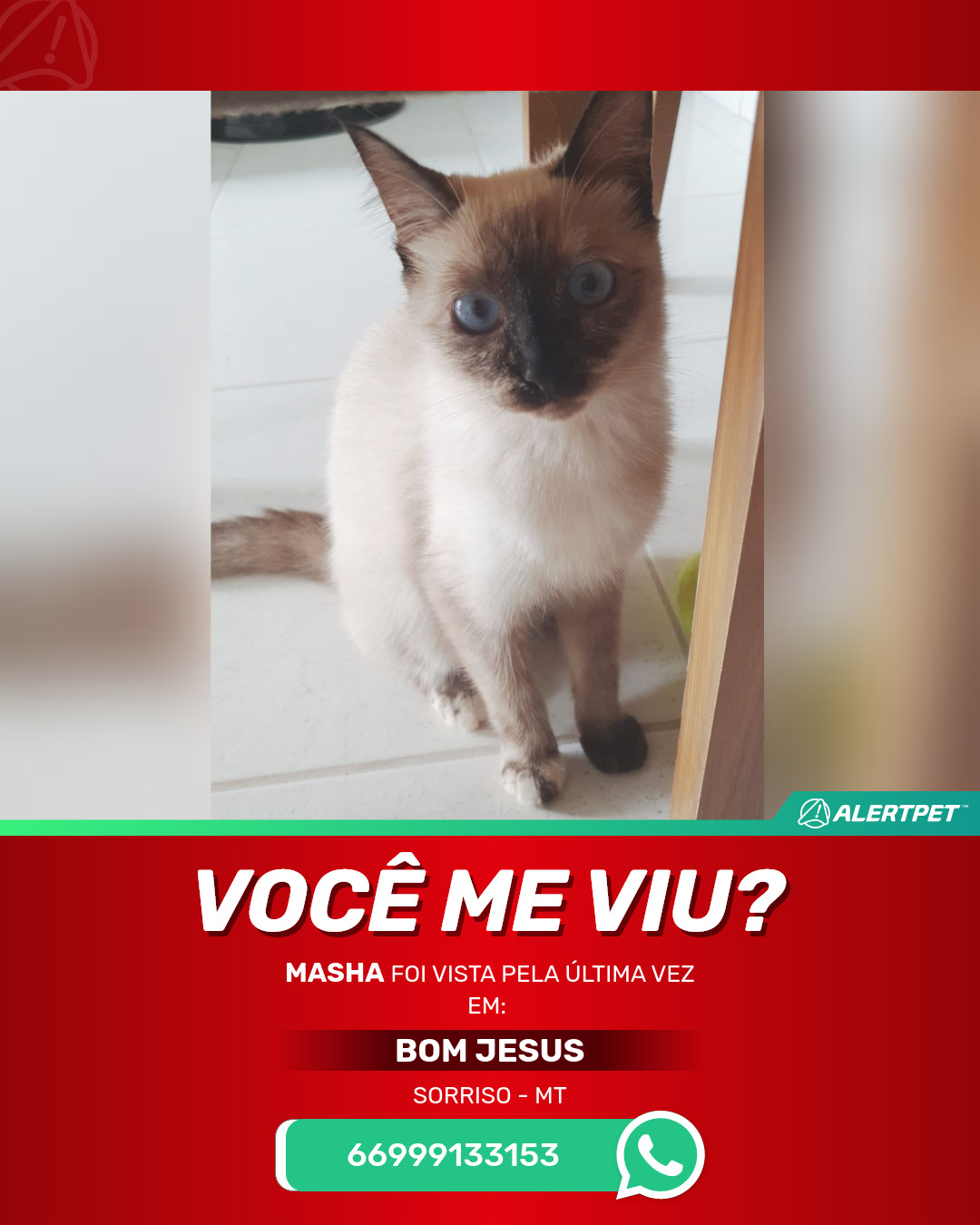 #AlertPet #Procurase #GatoDesaparecido #Sorriso #ProcuramosMasha