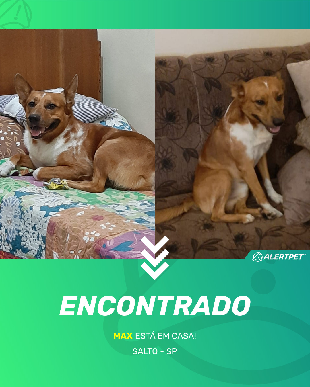 Depois de dois meses a cadelinha foi finalmente localizada graças a um anúncio da AlertPet