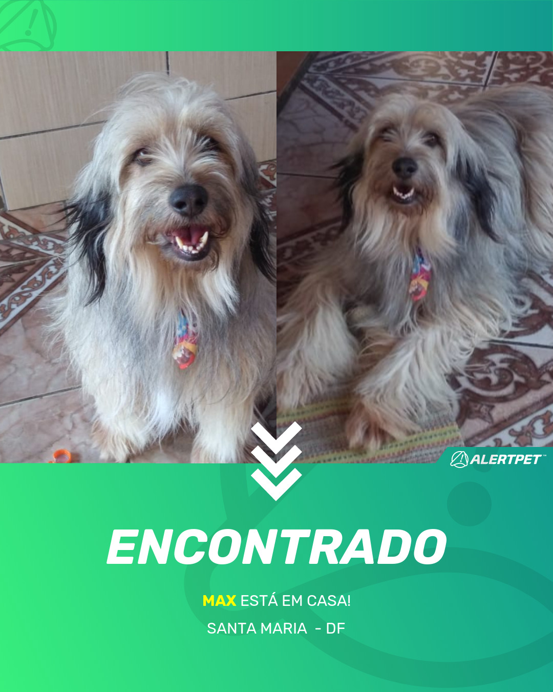 Depois de dois meses a cadelinha foi finalmente localizada graças a um anúncio da AlertPet