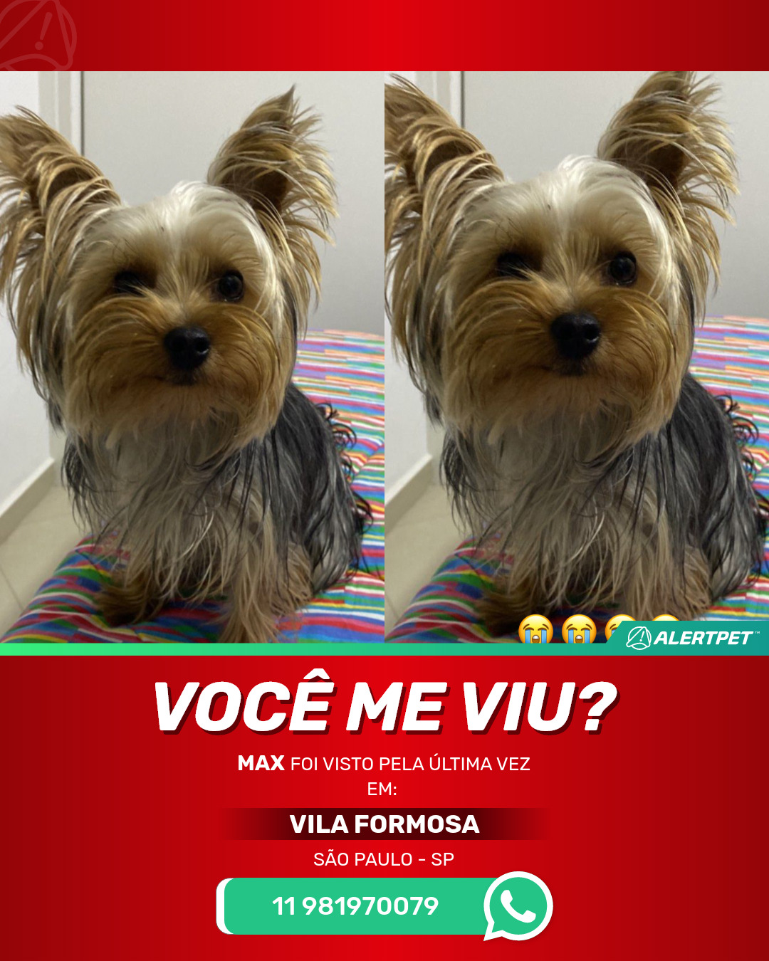 #AlertPet #Procurase #CachorroDesaparecido #SaoPaulo #ProcuramosMax