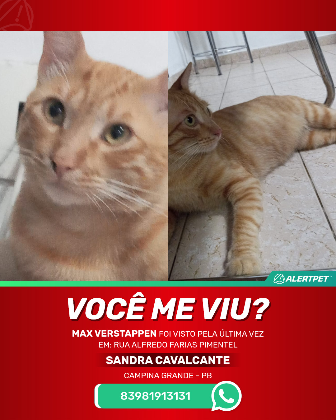 #AlertPet #Procurase #GatoDesaparecido #CampinaGrande #ProcuramosMaxVerstappen