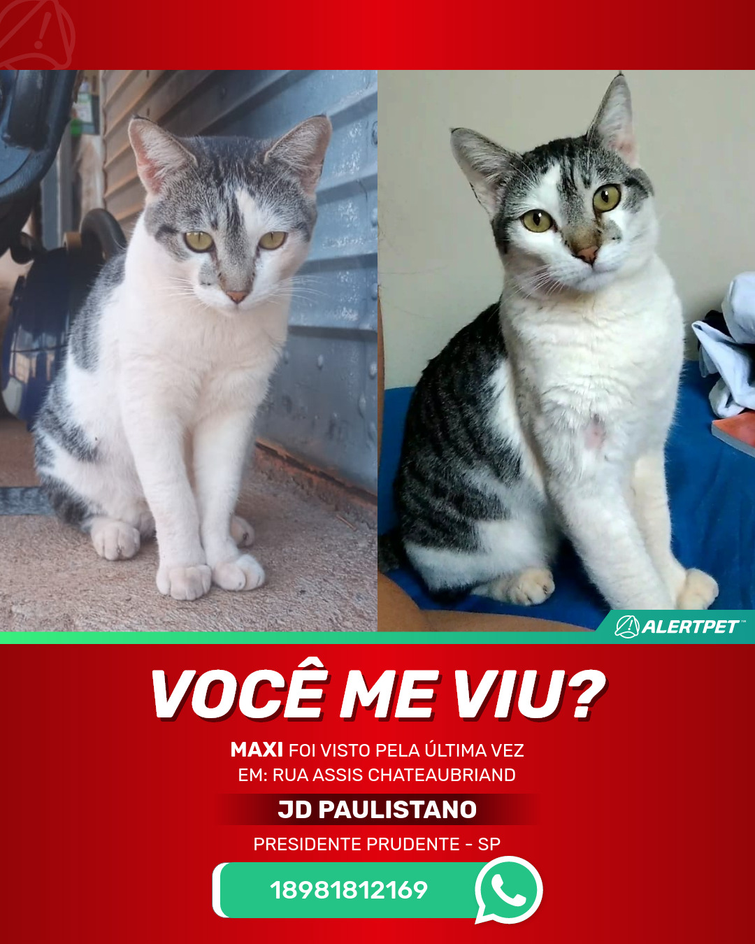 #AlertPet #Procurase #GatoDesaparecido #PresidentePrudente #ProcuramosMaxi