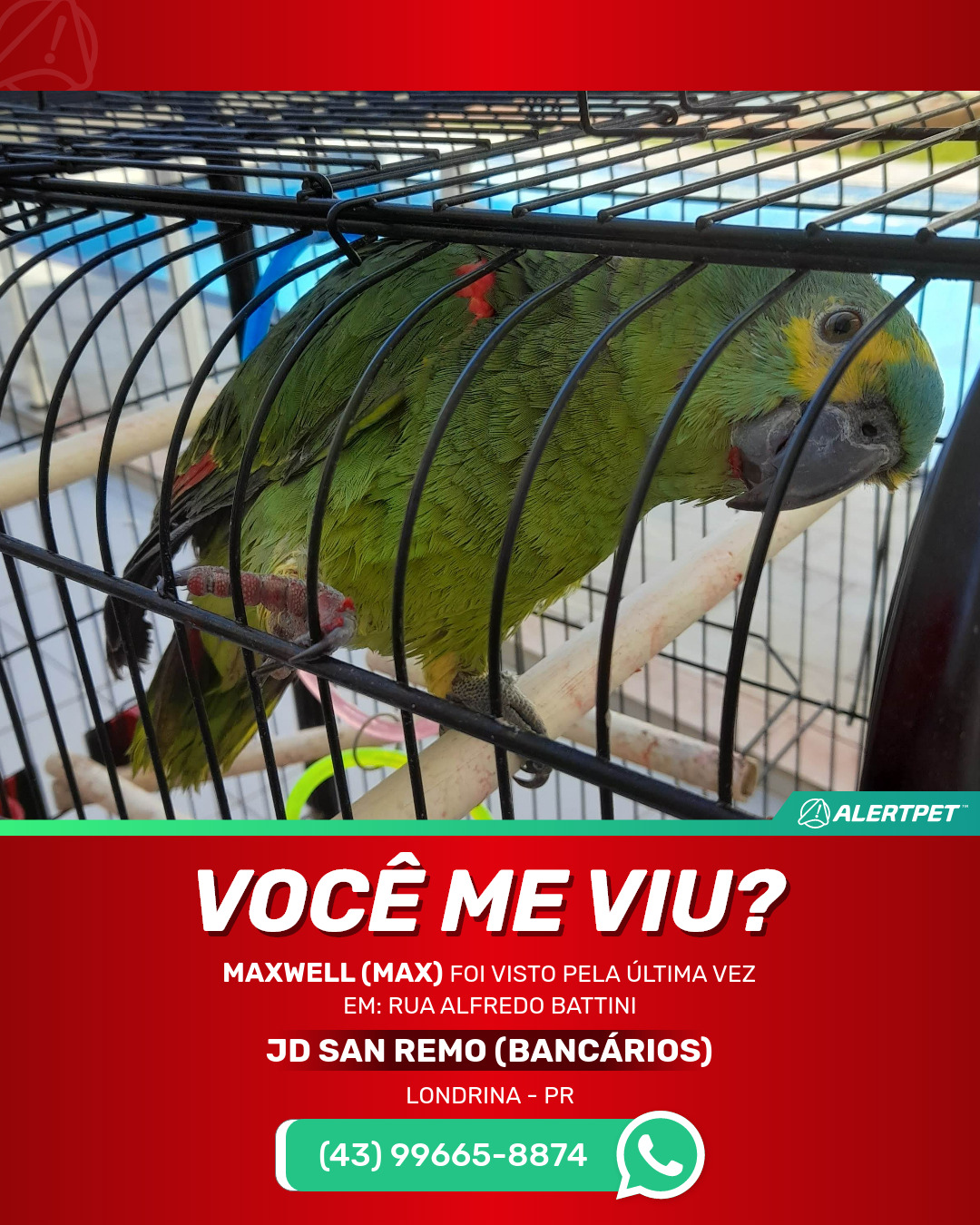 #AlertPet #Procurase #PassaroDesaparecido #Londrina #ProcuramosMaxwell(max)