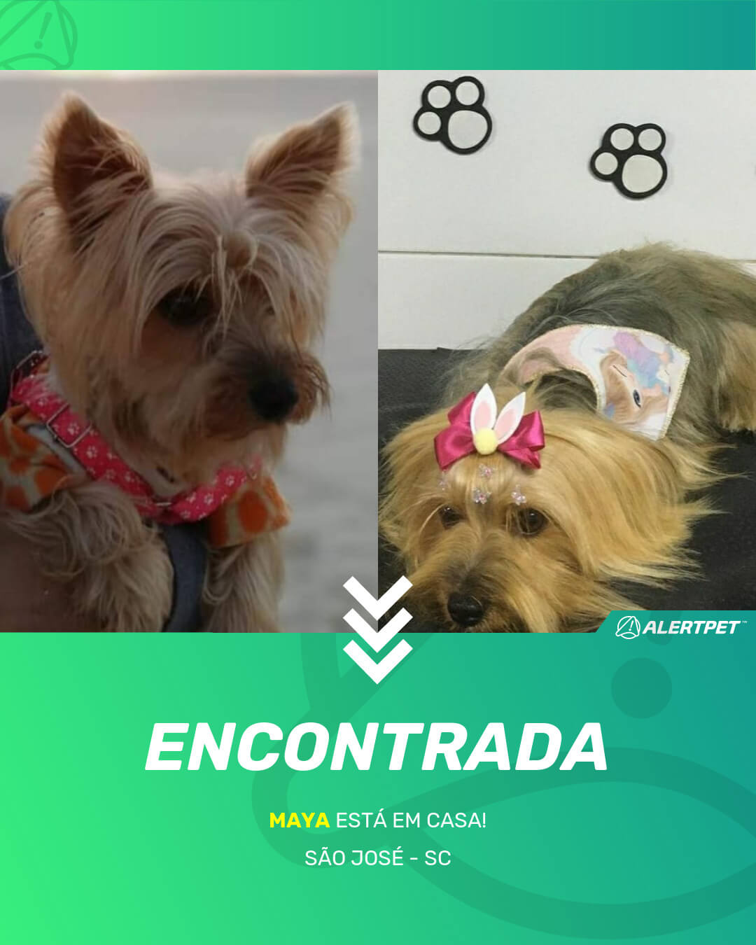 Depois de dois meses a cadelinha foi finalmente localizada graças a um anúncio da AlertPet