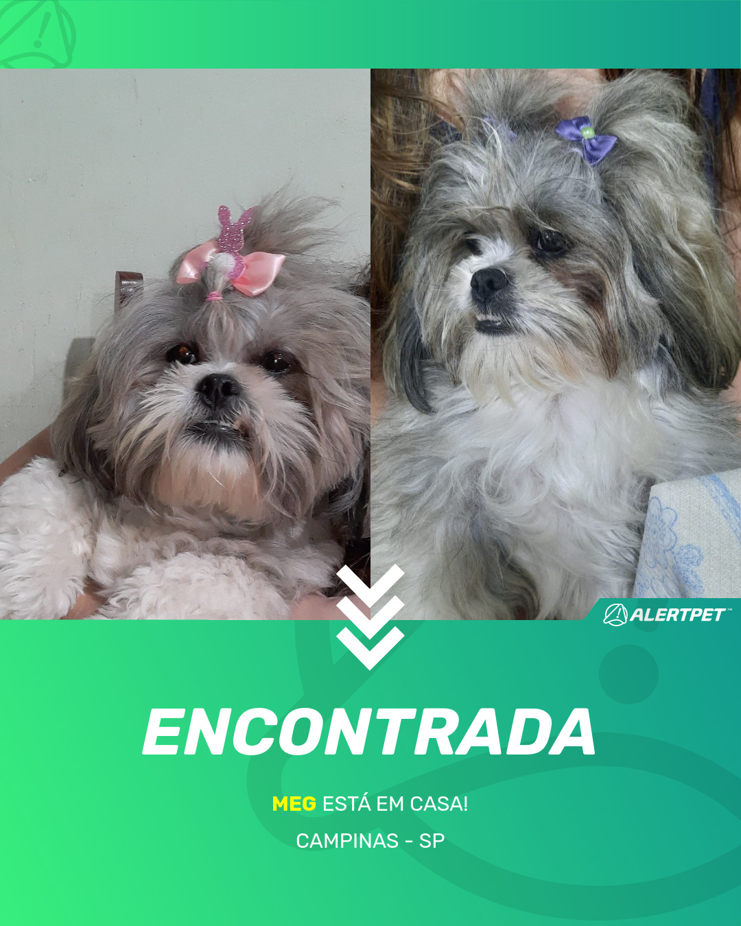 Depois de dois meses a cadelinha foi finalmente localizada graças a um anúncio da AlertPet