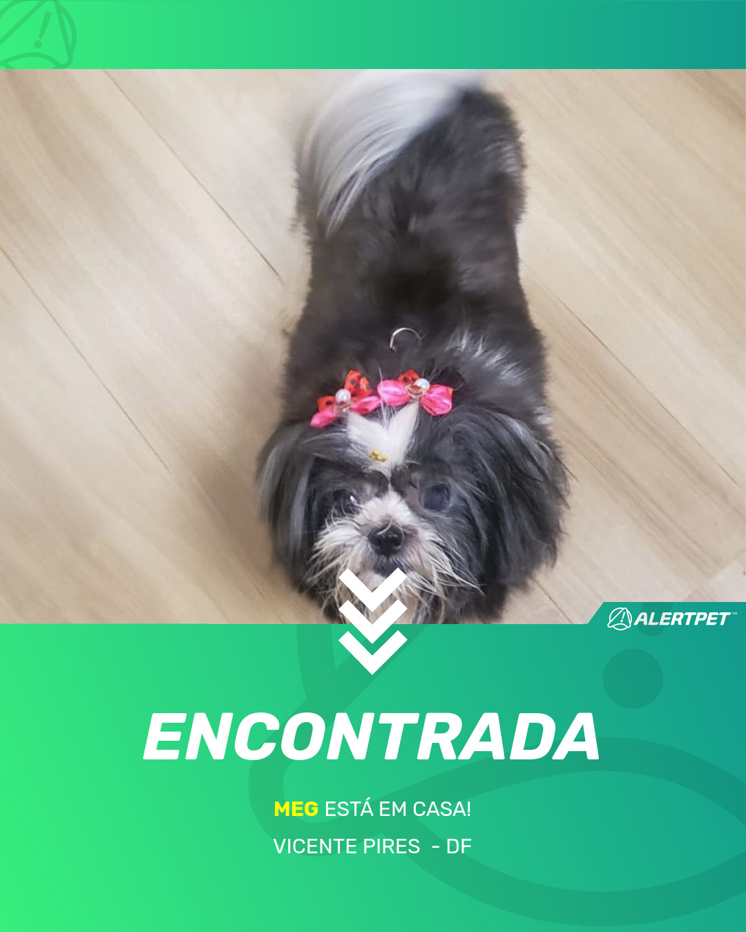 Por favor nos devolva a meg. Estamos desesperados. Ela tem problemas de saúde. Precisa usar medicamentos. Ela nos ajuda com uma idosa que tem Alzheimer. Fica sempre ao lado da cadeira da idosa. Assim nossa idosa distrai com a cachorrinha e conseguimos dar alimentação. Meu portão travou e não vimos. Então ela saiu e qdo demos falta já era tarde. Corremos nas ruas mas não vimos nenhum sinal dela. Muito triste. Deixo aqui nosso apelo a todos, para que nos ajude a encontrá-la. Nossa idosa est a sentindo diferença sem ela aqui. Compartilhem por aí. Famílias de Vicente Pires nos ajude por favor!