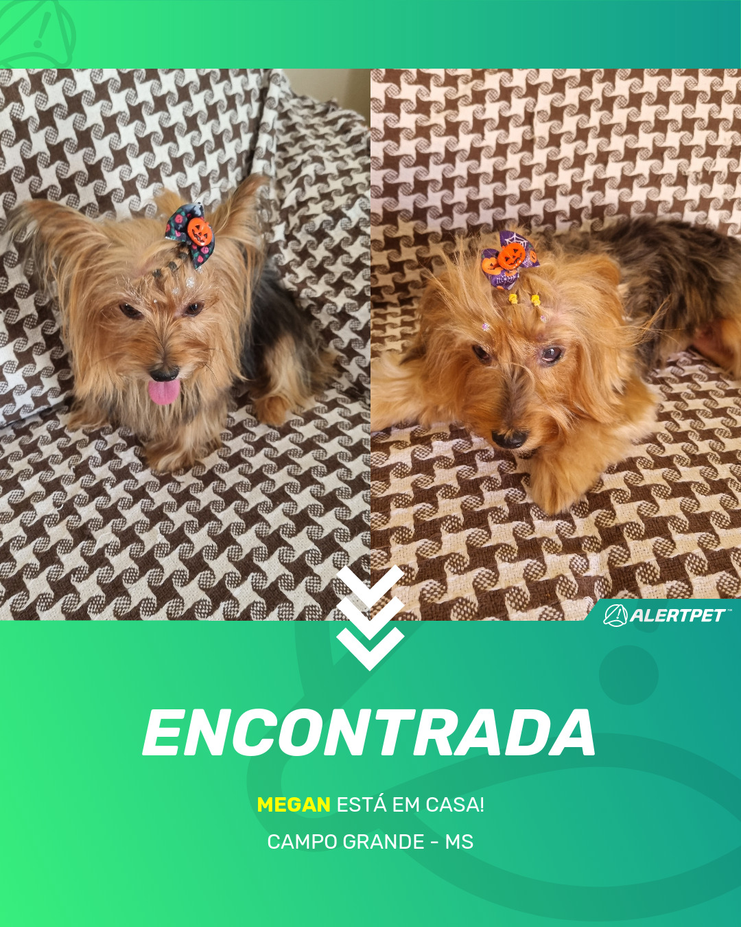 Depois de dois meses a cadelinha foi finalmente localizada graças a um anúncio da AlertPet