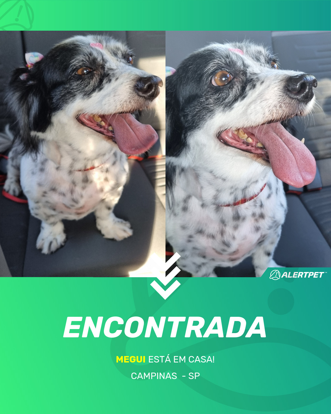 Depois de dois meses a cadelinha foi finalmente localizada graças a um anúncio da AlertPet