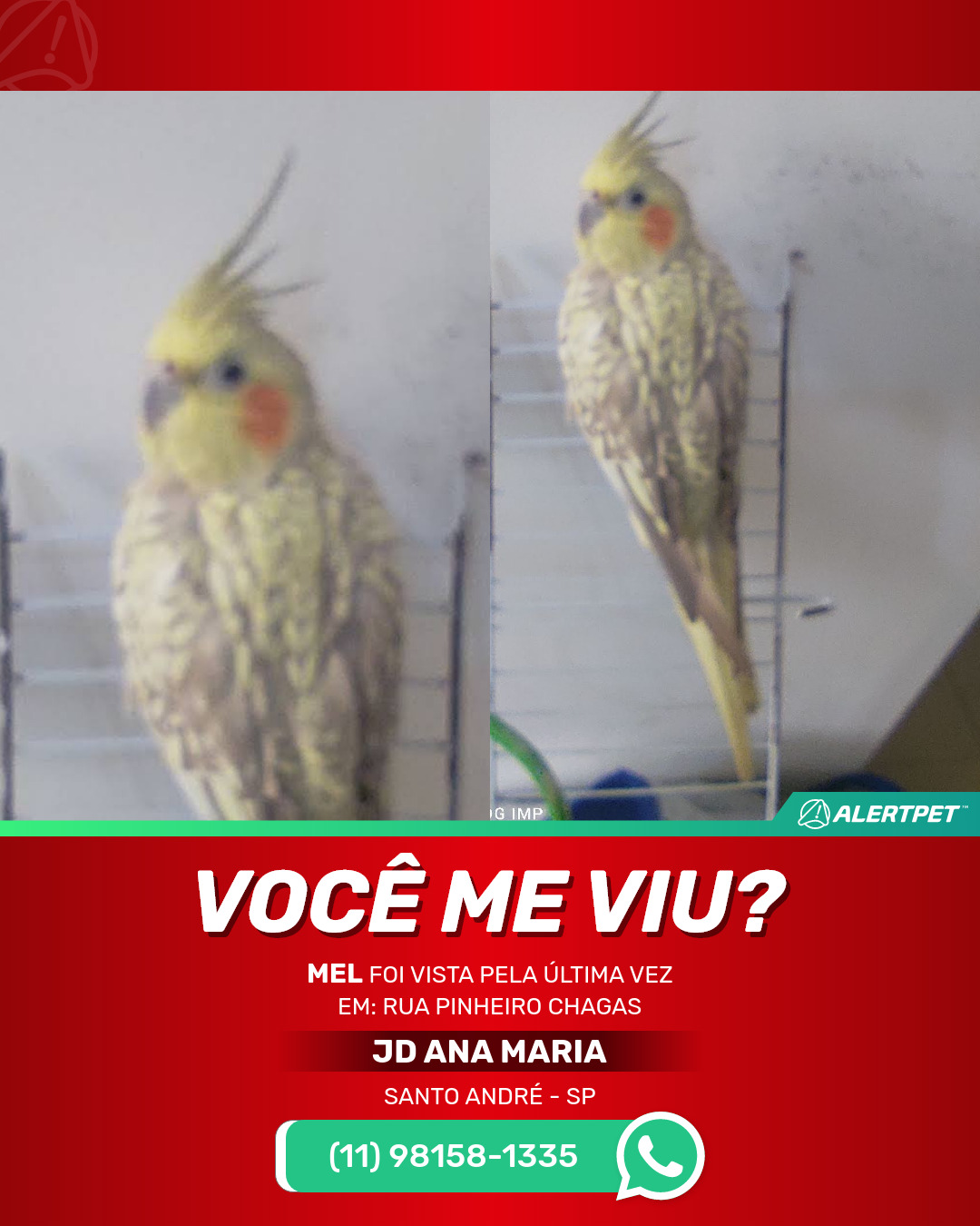 #AlertPet #Procurase #PassaroDesaparecido #SantoAndrE #ProcuramosMel